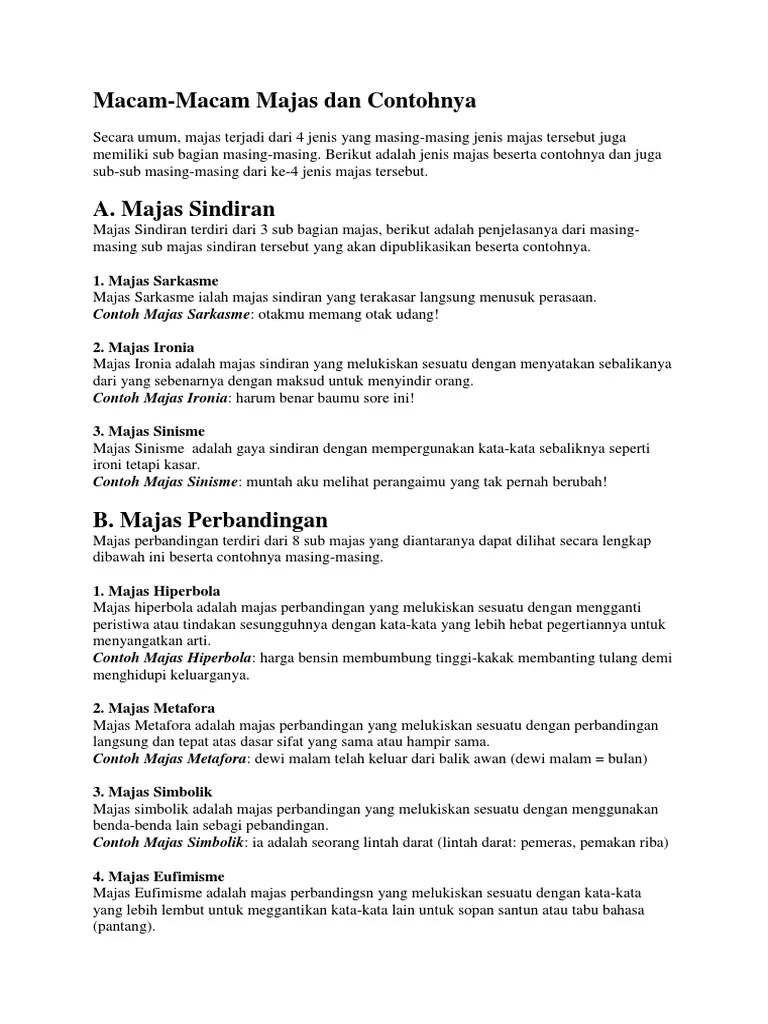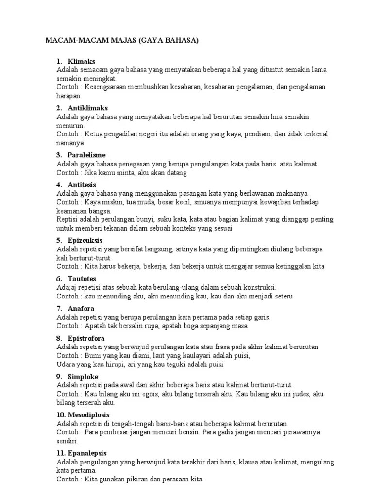 4 Macam Gaya Bahasa Majas Beserta Contohnya : 20 Macam Macam Majas Dan Contohnya Lengkap : Majas merupakan salah satu gaya bahasa dalam sastra yang biasanya sering dipakai dalam suatu karya sastra.. Melansir dari laman rumah belajar kemendikbud, dijelaskan bahwa majas merupakan sebuah istilah dalam bahasa indonesia untuk gaya bahasa yang . Tujuan penggunaan gaya bahasa ini adalah untuk membuat pembaca mendapatkan efek tertentu . 4), gaya bahasa adalah bahasa indah yang digunakan. Majas adalah gaya bahasa yang digunakan penulis untuk menyampaikan sebuah. Majas merupakan salah satu gaya bahasa dalam sastra yang biasanya sering dipakai dalam suatu karya sastra.